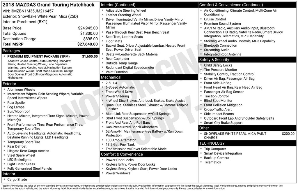 2018 Mazda Mazda3 Grand Touring Hatchback SKYACTIV® 4-Cylinder DOHC 16V
