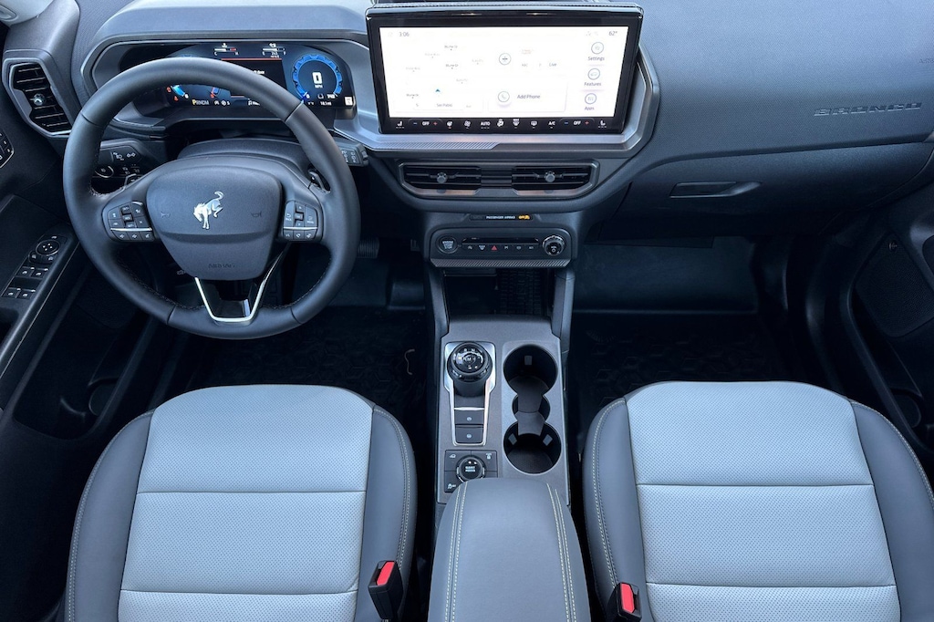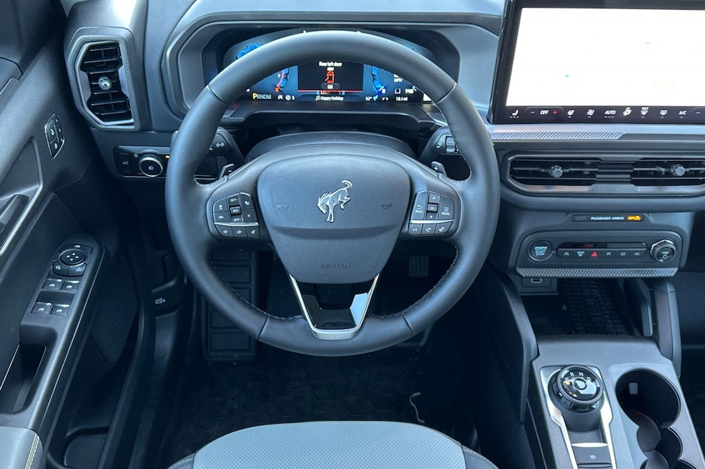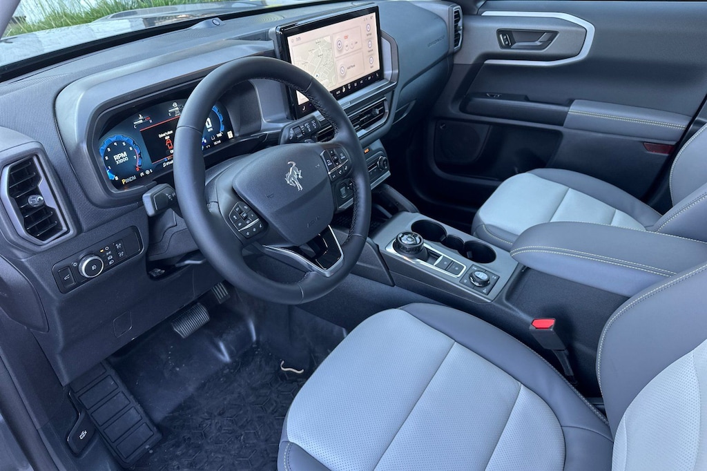 I got a 2025 Big Bend with the black diamond off road package. The steel modular front and rear in combination with bush guard gives this year model. A very aggressive off road look. With the ability to easily mount accessories and power them with the factory installed auxiliary switches. Hitch receiver seamlessly mounted into the rear steel bumper flanked by some very chunky recovery points. The upgraded aluminum rims wrapped with Continental all-terrains. It make this the most capable bronco sport yet. The interior of the 2025 has been updated with a new 13 inch touchscreen with Android Auto and apple car play. The lines of the dash flow elegantly from the new infotainment screen to the new all digital 12 inch gauge chaster. Toggling through the different modes on the gauge chaster is very intuitive, and all the displays are laid out very cleanly. Moving from gauge chaster the center storage cubby just below the infotainment screen there is a wireless charger and USB/ USB-c ports. The passenger side of that same cubby gets a handle and a matching one on the roof just in case the driver bucks a little too much. The passenger also gets a mesh storage area. That leads us to the fact this vehicle has tons of storage options all throughout. You have pockets on the sides of the front two seat big enough for the latest new phones. Very generous door storage on all four doors plus huge glove box and center console with 12 volt outlet. The back side of the center console has air vents and another 12 volt outlet plus a 110 outlet. Now getting to the cargo area it is massive for a crossover SUV. With off road package you get a cargo management system and a very nice rubber mat. Under that there is a full size tire plus scissor jack and funnel to use with the capless filler system. On the liftgate there isa pair of very bright led lights turned on with a switch in the cargo area. This feature packed vehicle has tons awesome gadgets and hidden a little homages I spend all day just talk that. At the end of the day it is car. So how does it drive. It is wonderful, the steering and pedal response is beautiful. Rides very smooth and little to no road noise going down the highway. The active cruise control and co-pilot 360 have been very handy. The car literally drives itself most of the time. There is not enough good things I could same about this car. I love it and you pick one too. You will see what I mean. - 5.0