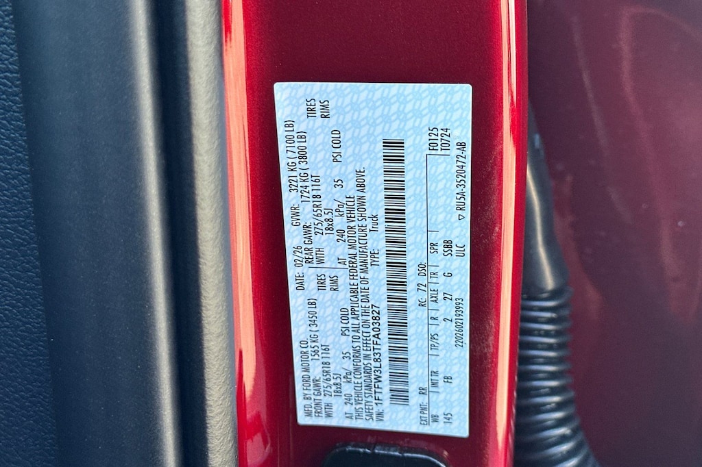 - 1FTFW3L83TFA03827