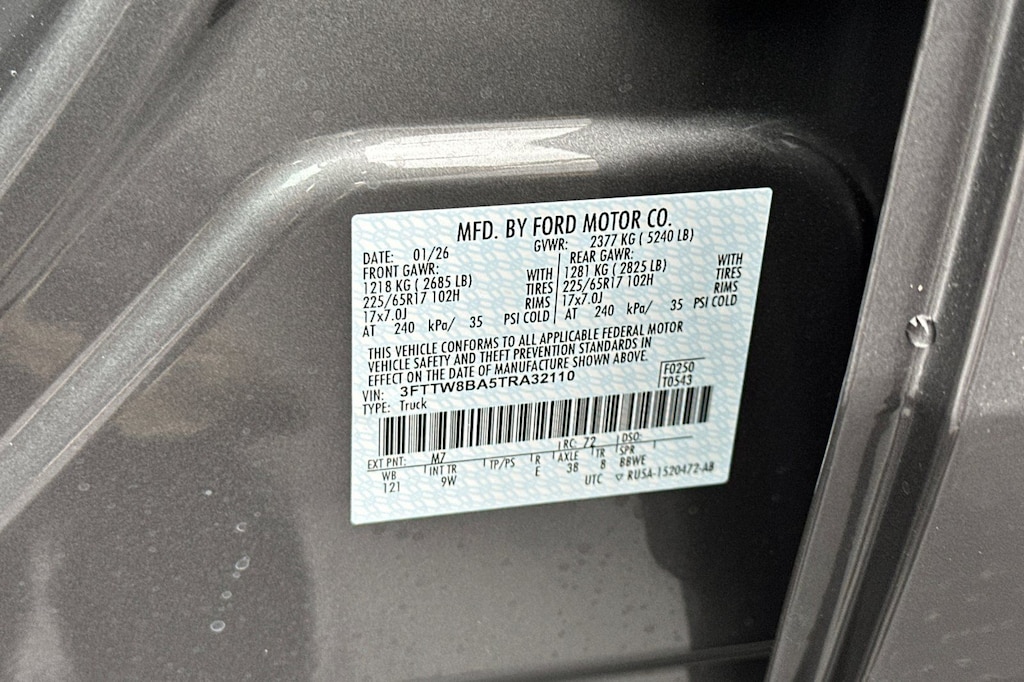 Carbonized Gray Metallic 2026 Ford Maverick XL AWD 8-Speed Automatic EcoBoost 2.0L I4 GTDi DOHC Turbocharged VCT